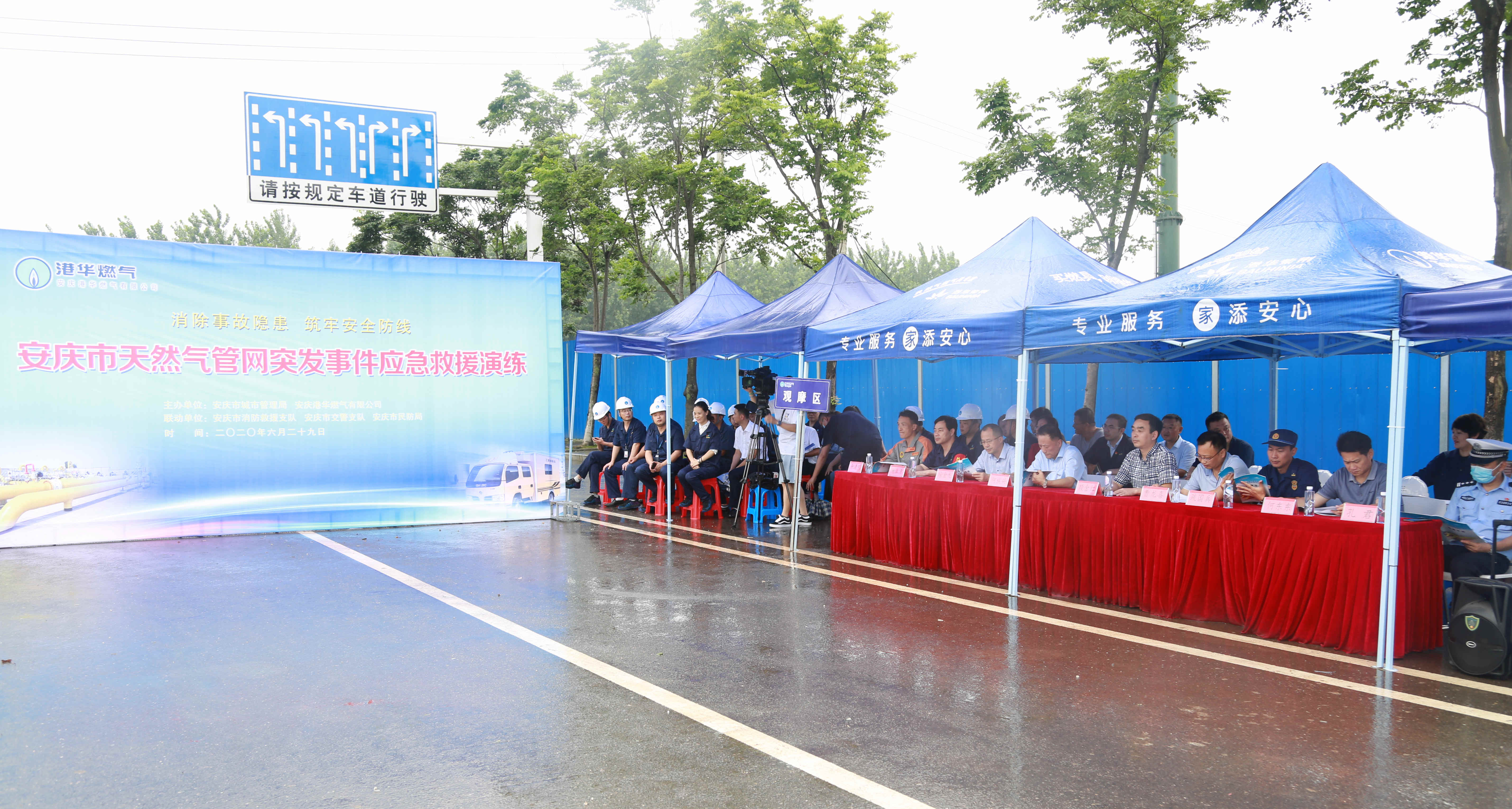 市城管局、應(yīng)急管理局、消防救援支隊、民防局及城區(qū)液化氣站相關(guān)負(fù)責(zé)人到現(xiàn)場觀摩,安慶港華黨委書記、董事長何族興率公司管理層及公司應(yīng)變小組成員參加演練。